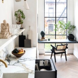 You’ll find cooler toned metals such as chrome, stainless steel and brushed nickel also contributing to this sleek minimalist aesthetic.
