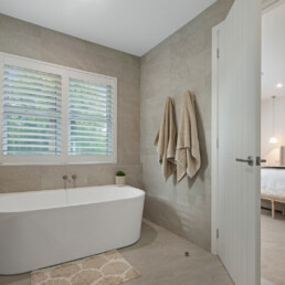 The wide frame double-hung windows to the front façade allow for an abundance of light to flood into the home and the choice of plantation shutters creates a stylish and clean finish while allowing the amount of sunlight to be controlled.