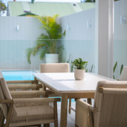 Further enhancing the holiday retreat concept, there’s a seamless transition from indoors to out with corner sliding doors providing easy access to the patio where a generous entertainment area overlooking the swimming pool. This is the perfect space to while away the long summer months, it’s easy to relax and lose track of where you are.