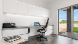The kitchen is appointed with black Smeg appliances, Caesarstone benchtops and a butler’s pantry with sink and window for natural light. They also added a rumpus to the design for their young family and the family meals area includes a Velux skylight and stunning views to the river.